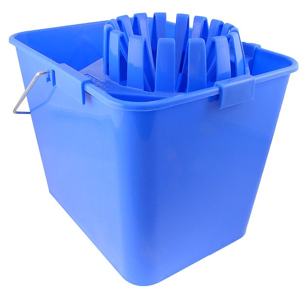 Znakomite, bardzo wytrzymałe wiadro do mopa z koszykiem umożliwiającym wyjątkowo skuteczne wyciskanie mopów sznurkowych i paskowych.